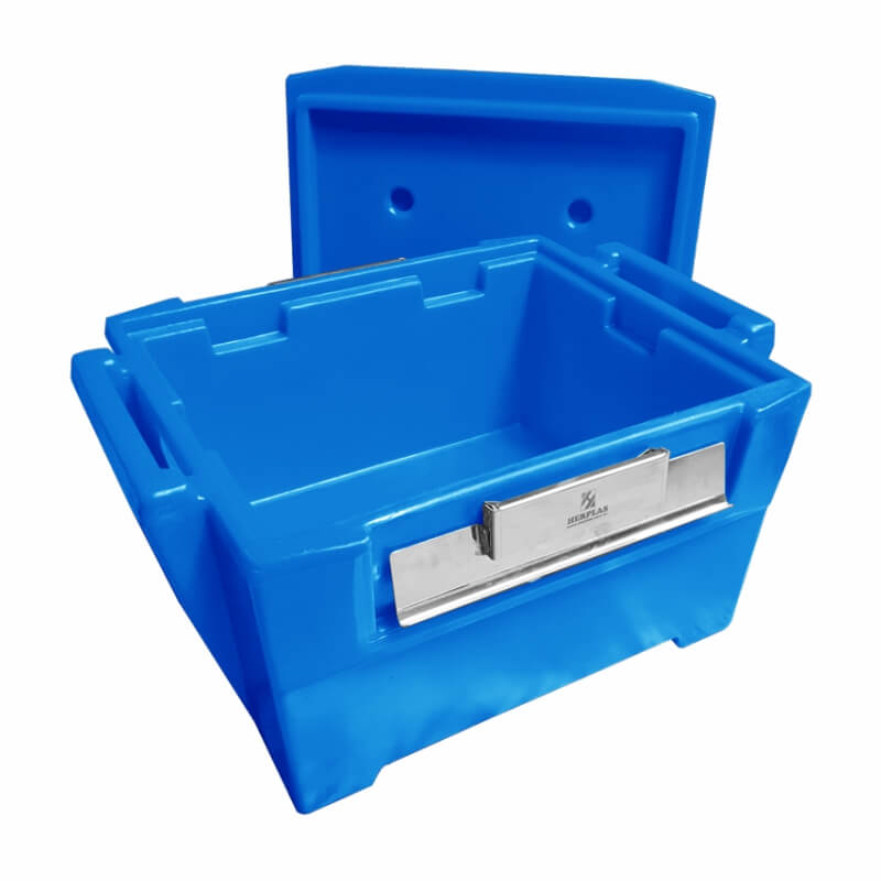 Fabricada em plástico (Polietileno) através do processo de rotomoldagem, esta caixa térmica é altamente resistente a impactos, corrosão e variações climáticas, garantindo sua durabilidade e confiabilidade em diversas condições de uso.